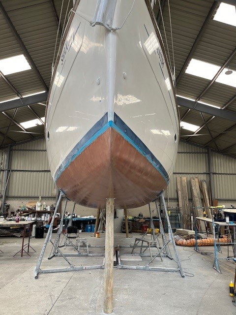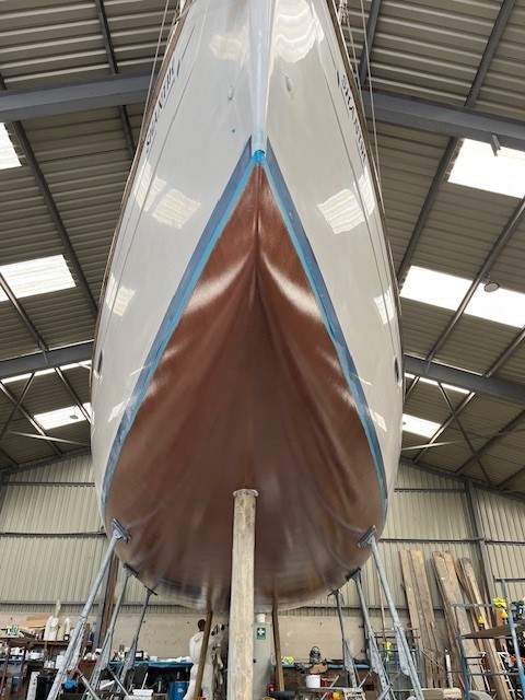 - Metal Fittings: Through-hull fittings and rudders should receive one or two coats of solvent-free primer to insulate the metal from the copper.